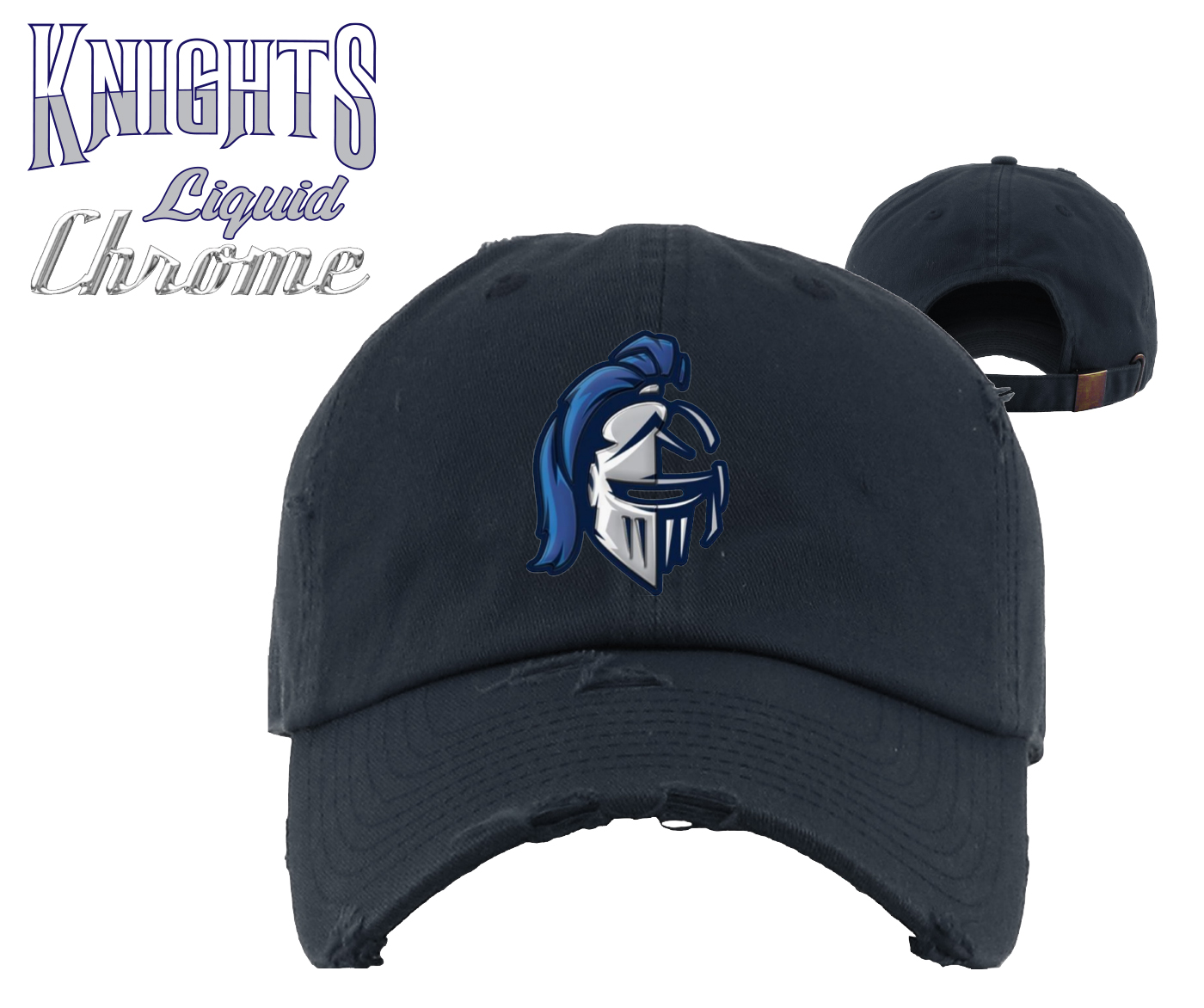 Introducing the Blue Knights Liquid Chrome Distressed Low Profile Dad Hat made exclusively for the Blue Knights Membership by Pacer. Help support your favorite Team by wearing one or more of these Distressed Pre-Washed 100% Cotton Baseball Caps around Town. Available exclusively @ BlueKnightsShop.com.