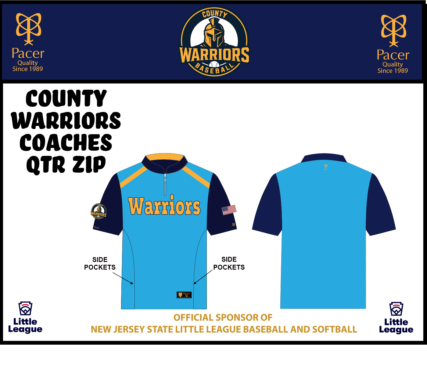 Introducing the County Warriors Official Qtr Zip Short Sleeve Performance Cage Jersey by PACER. Support your favorite Team by wearing this Fully Sublimated Ultra Lite Weight Performance Short Sleeve 1/4 Zip Pullover Cage Shirt. Adorned with the Official Warriors Wordmark Logo on the front chest, CW Badge Right Sleeve and Old Glory on the Left Sleeve. Featuring a 100% Dri-Power Performance Polyester with Quick-Dry & Anti Microbial Properties added for comfort. So whether your Coaching the Bases, taking BP or walking around town, show support for your favorite team by purchasing one today.