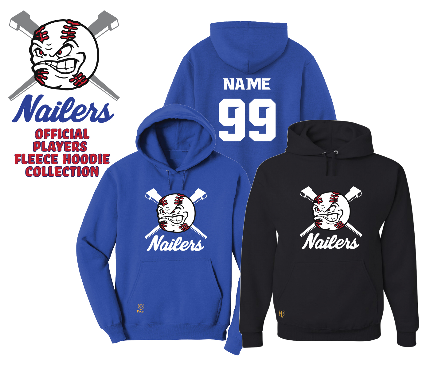 INTRODUCING THE FREEHOLD NAILERS PLAYER FLEECE HOODIE COLLECTION by PACER. Show support for your favorite Player & Team by wearing this Unisex Pullover Fleece Hoodie Adorned with the Official Nailers Mascot Logo on the Front Chest in a High Density Silicone Application.