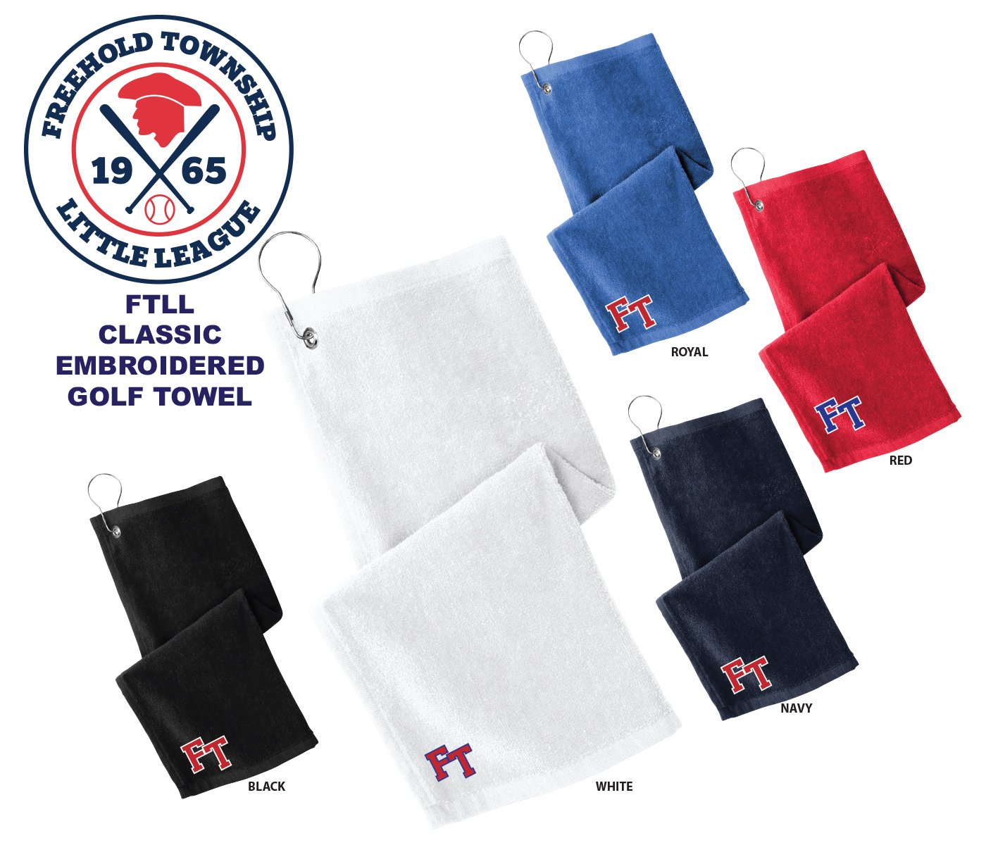 Introducing the OFFICIAL FREEHOLD TOWNSHIP LITTLE LEAGUE CLASSIC EMBROIDERED GOLF TOWEL COLLECTION made exclusively for the FTLL Membership by Pacer. Help Support your favorite League by Sporting one or more of these CLASSIC GOLF TOWELS AROUND THE COURSE. Available exclusively @ PacerShops.com.