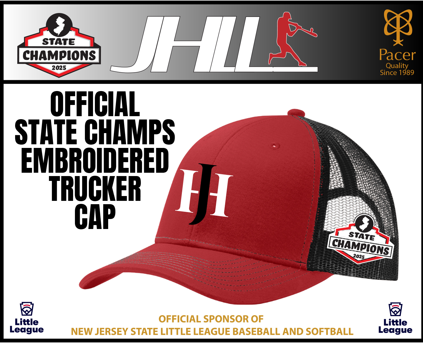 Introducing the 2025 OFFICIAL JACKSON-HOLBROOK LITTLE LEAGUE STATE CHAMPIONSHIP EMBROIDERED CAP made exclusively for the JHLL MEMBERSHIP by PACER. Celebrate this amazing season by wearing this full color embroidered front & rear fitted cap one around town.