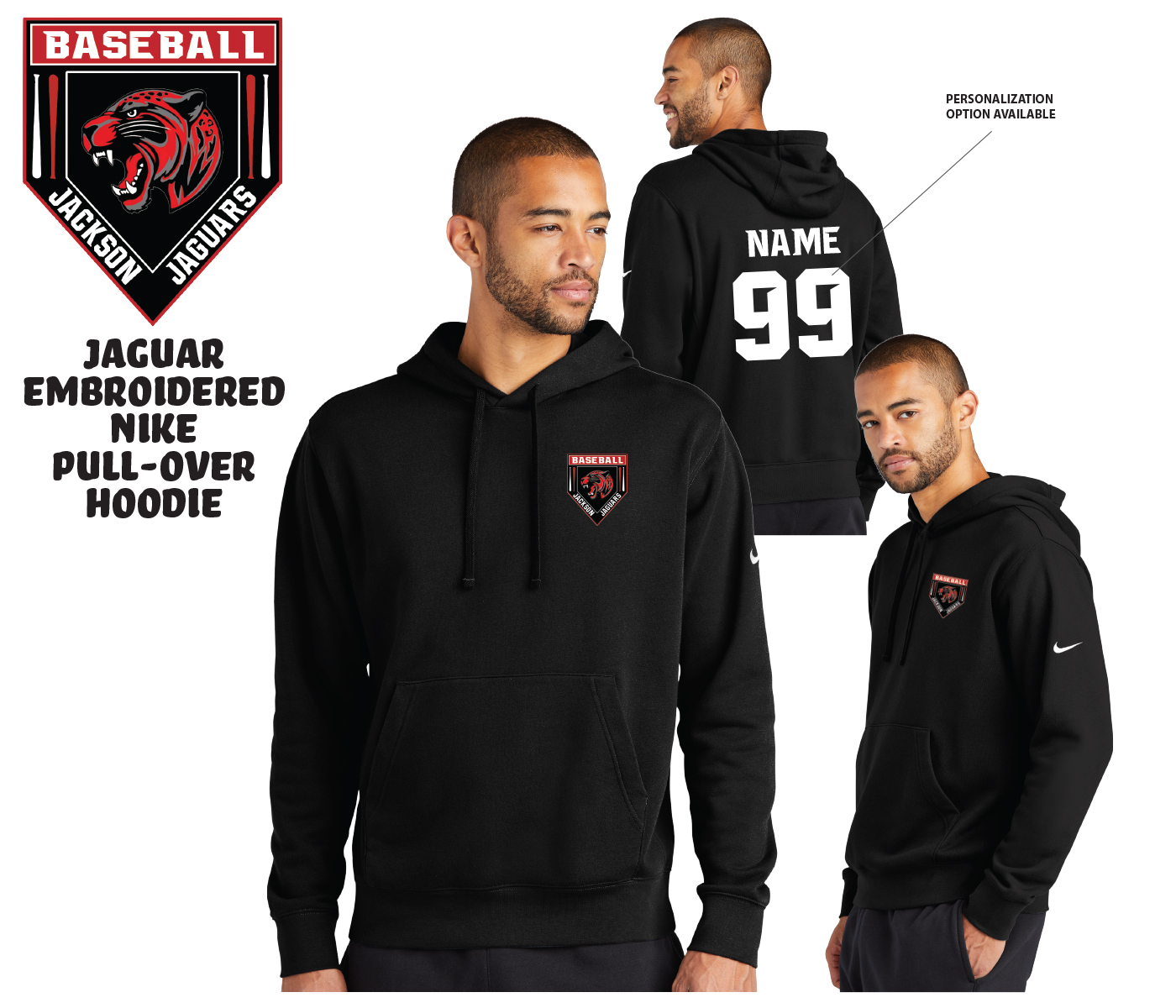 INTRODUCING THE JTHS NIKE EMBROIDERED PULL OVER HOODIE by PACER. Show your support for your favorite Team and Player by wearing this 8oz Poly-Cotton Pull Over Hoodie which has an incredibly Soft and Relaxed unisex fit. Adorned with the OFFICIAL JAGUAR BASEBALL CREST LOGO Embroidered on the Front Left Chest as well as the official Nike Swoosh Logo on the Left Sleeve.
