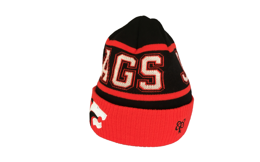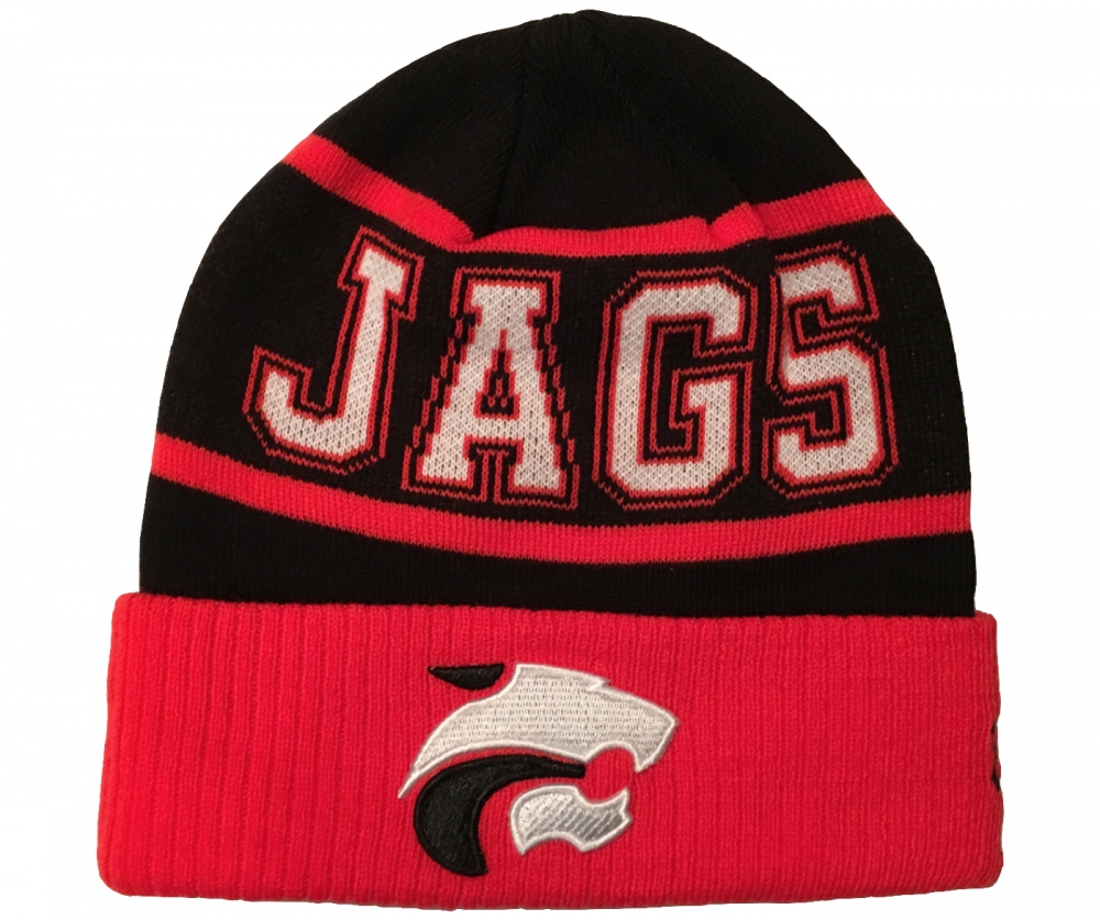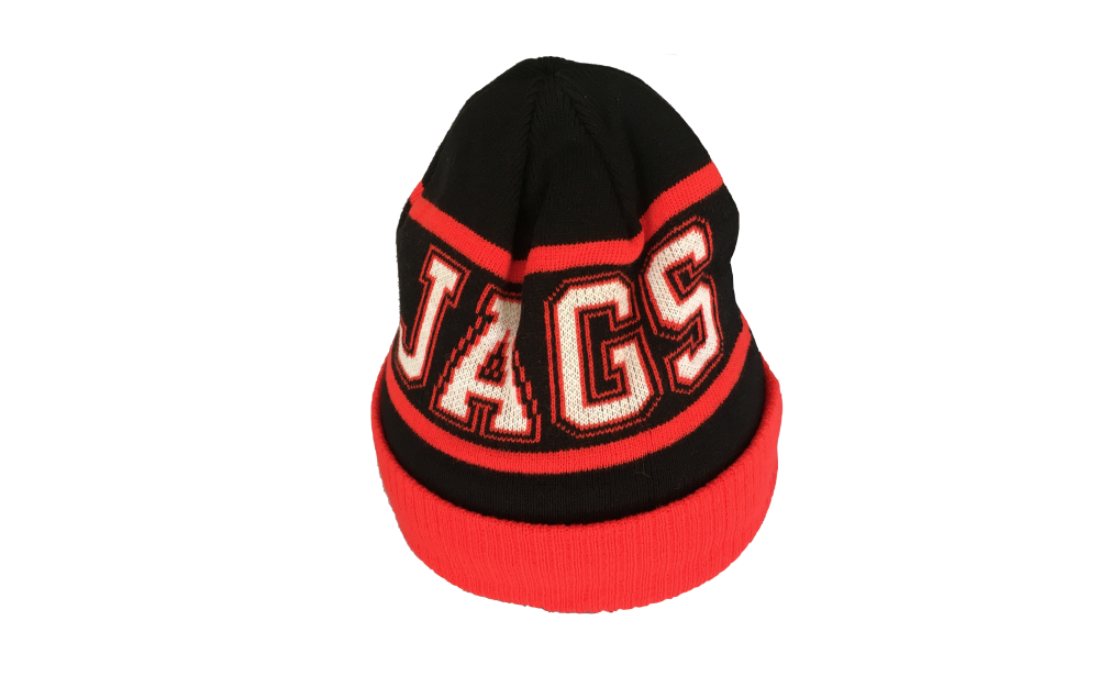 Introducing the JAGS CUSTOM JACQUARD 100% WOOL CUFF KNIT HAT made exclusively for the Jackson Memorial Jaguars by PACER. Produced to keep you warm during those cold winter days & nights using only the finest 100% Soft Hand Wool. BLACK CROWN w Pro Player Red Ribbed Roll Up Cuff adorned with a Two Color Raised 3D Embroidered Jaguar Logo coupled with the JAGS word-mark Jacquard Weaved directly into the front and back of this exclusive PACER product.