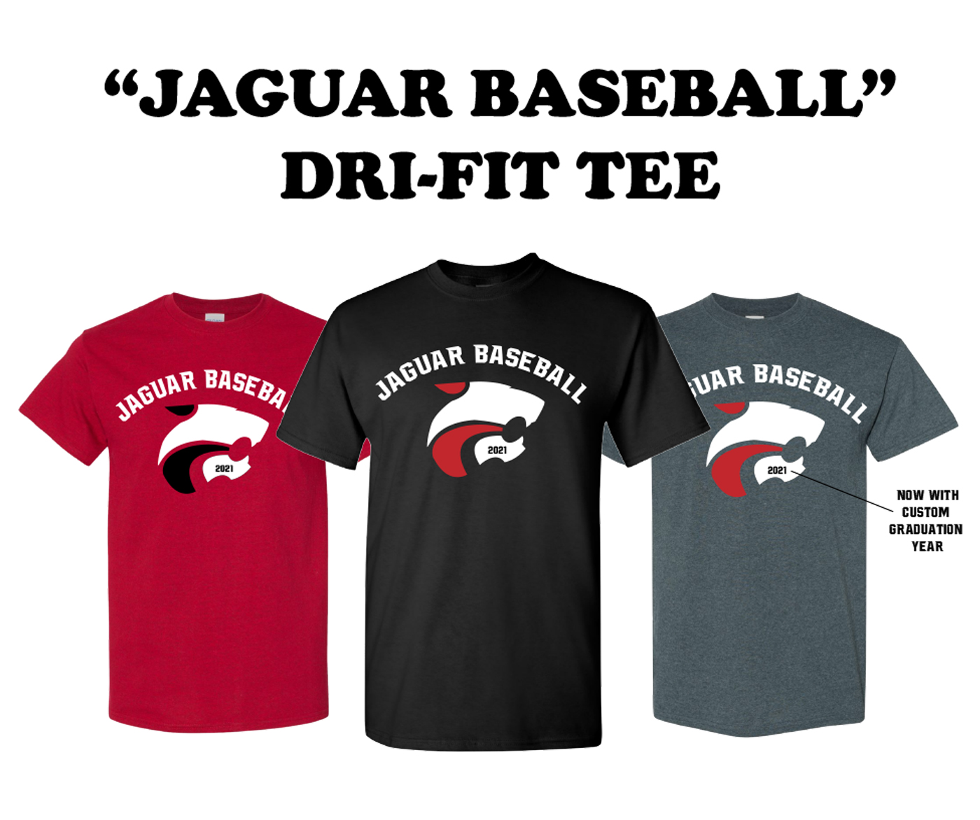 Introducing the JAGUAR BASEBALL Dri-Fit Tee Shirt Collection by PACER. Stand Out & show support for your Favorite Team, Class & School by wearing one or more of these Dri-Fit 50/50 Poly/Cotton Crew Neck Tee's which have an incredibly Soft and Relaxed unisex fit. Adorned our Exclusive Jag Head Logo complete with Custom Graduation Year incorporated into the design.