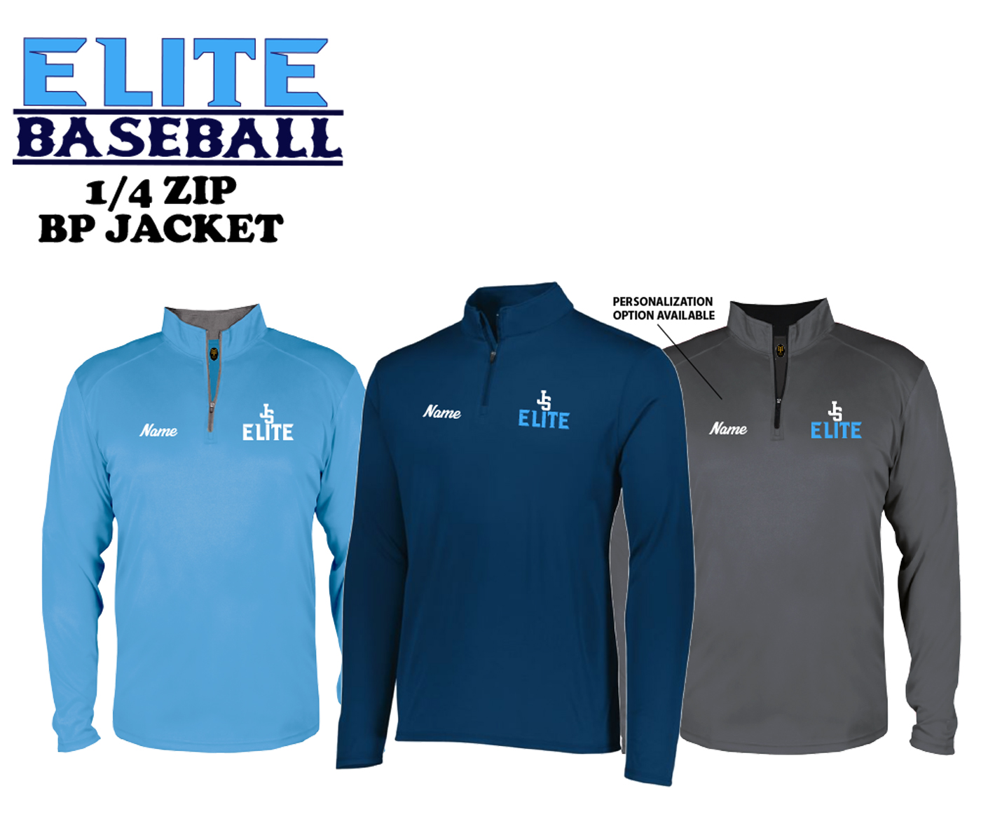 INTRODUCING THE OFFICIAL JERSEY SHORE ELITE 1/4 ZIP LONG SLEEVE PERFORMANCE CAGE JERSEY by PACER.Support your Favorite Team by wearing this Ultra Lightweight Performance Long Sleeve 1/4 Zip Pullover Cage Jersey around the fields. Adorned with the New Elite Logo on the left front chest in an HD Rubberized Application and featuring a 100% Performance Polyester with Quick-Dry & Anti Microbial Properties added for comfort. So whether your taking BP or walking around town, show support for your Favorite League by purchasing one today.FEATURES:-100% polyester moisture management/antimicrobial performance fabric-Contrast zipper and inner collar-Double-needle hem-Self-fabric collar with 8"" locking zipperPERSONALIZATION OPTION AVAILABLE!!!- Please Allow 10 Days for Personalized Orders.- No Exchanges or Refunds allowed on Custom OrdersPORTIONS OF THE PROCEEDS FROM THE SALE OF THESE ITEMS GO DIRECTLY TO HELP SUPPORT ELITE BASEBALL OPERATIONS.