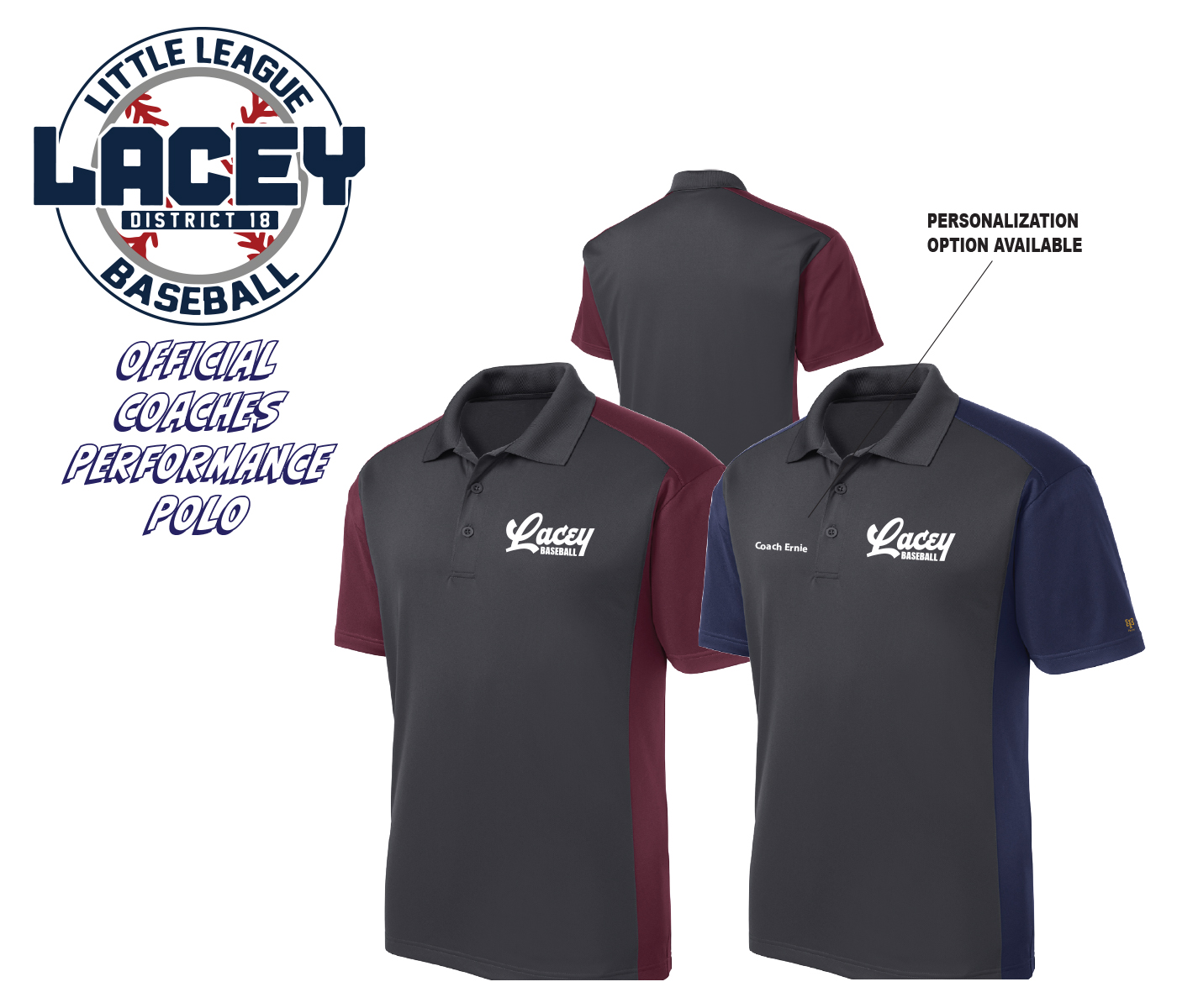 Introducing the Lacey Little League Official Embroidered Coaches Polo Shirt made exclusively for the Nailers Membership by PACER. Smooth, snag-resistant and moisture-wicking material adorned with the Official Lacey Baseball Wordmark Embroidery on the Front Left Chest.