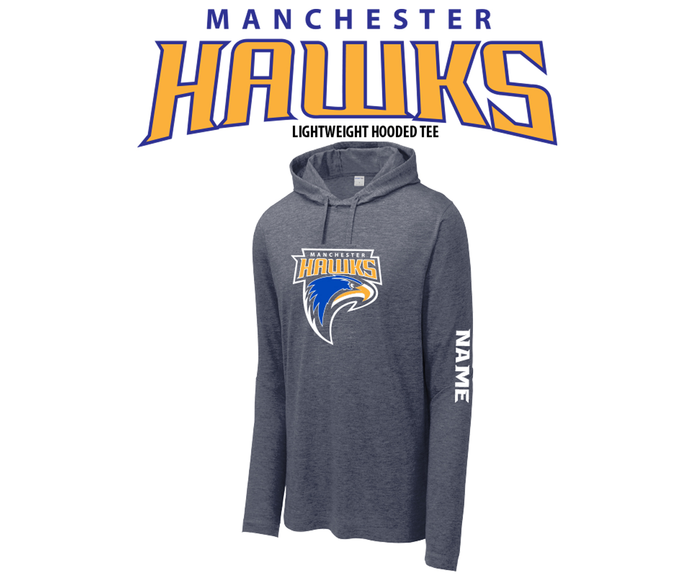 INTRODUCING THE MANCHESTER HAWKS LIGHTWEIGHT PULLOVER HOODED TEE by PACER.Show support for your favorite player & team by wearing this Unisex 4.5oz Lightweight Pullover Hooded Tee Adorned with the Official Manchester Hawks Logo on the Front in a High Density Rubberized Application.Personalization Option Available!!!- PLEASE ALLOW 10 BUSINESS DAYS FOR PERSONALIZED ORDERS.- No exchanges or refunds allowed on Custom orders.PORTIONS OF THE PROCEEDS FROM THE SALE OF THESE ITEMS GO DIRECTLY TO HELP SUPPORT MANCHESTER HAWKS BASEBALL OPERATIONS.
