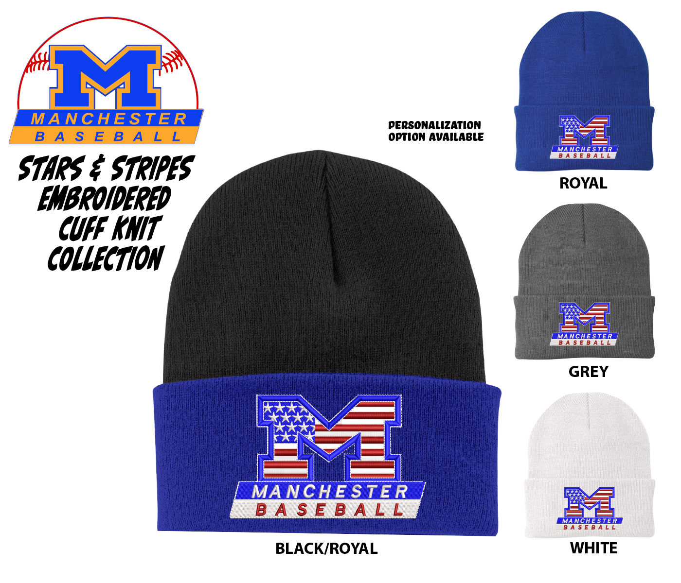 Introducing the Manchester Little League Official Stars & Stripes Embroidered Cuff Knit Collection made exclusively for the MLL Players & Fans by PACER. Produced to keep you warm during those cold days & nights. Available in 4 Colorways w Roll Up Cuff adorned with the Manchester Little League Stars & Stripes Logo Embroidered on the front.