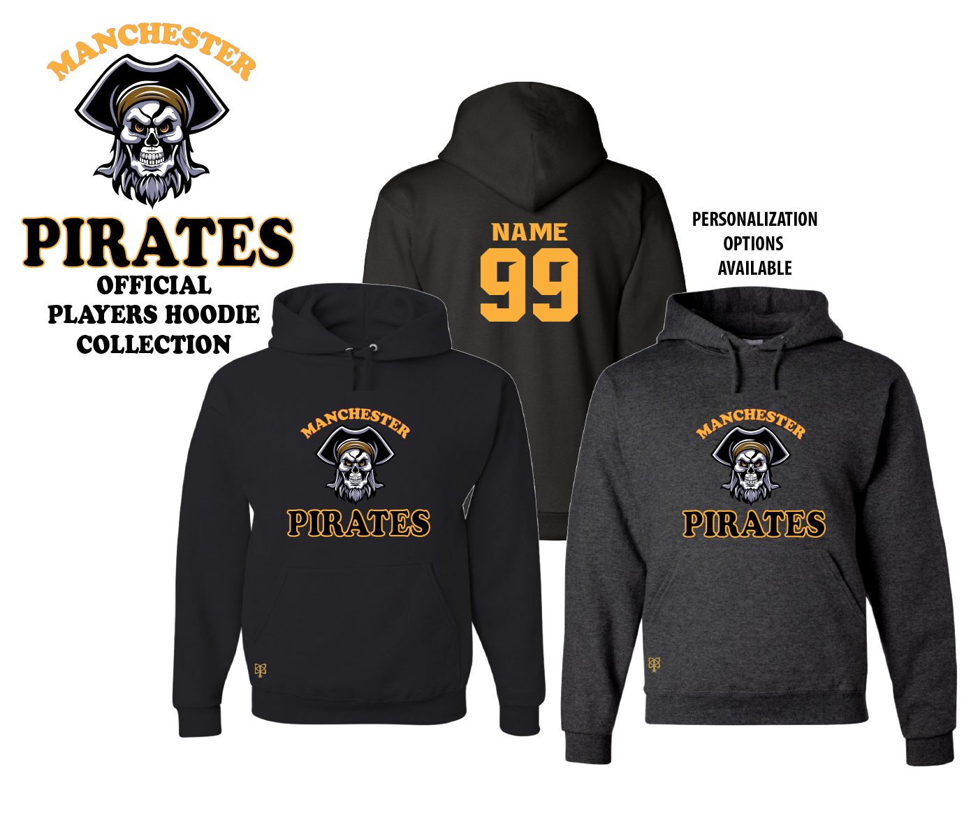 INTRODUCING THE OFFICIAL MANCHESTER PIRATES PLAYERS HOODIE COLLECTION by PACER. Show support for your favorite team & player by wearing one or more of these 8 oz Ring Spun Poly-Cotton PULL-OVER HOODIES which have an incredibly Soft and Relaxed unisex fit. Adorned with the Official Manchester Pirates Logo on the front Chest.