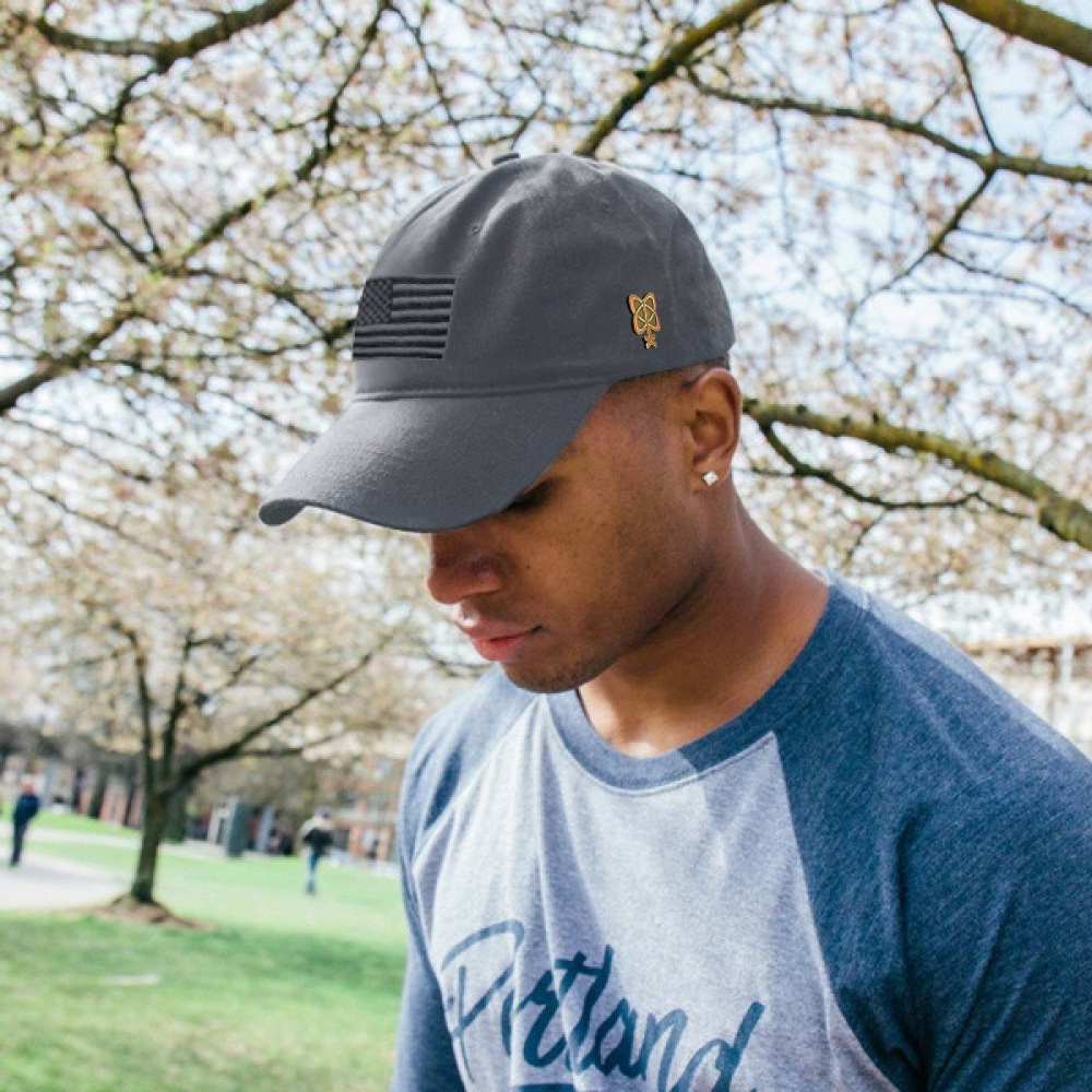 This Classic 6-panel Grey Dad Hat offers an unstructured relaxed fit and is made of 100% washed cotton. It features a Raised High Quality American Flag Embroidery in matching Fashion Colors, stitched eyelets for ventilation, pre-curved brim and a integrated cotton sweatband, the cap is finished with an antique brass buckle closure. 100% Washed cotton High Quality Raised Embroidery Ventilation Eyelets Brass buckle closure Relaxed Fit