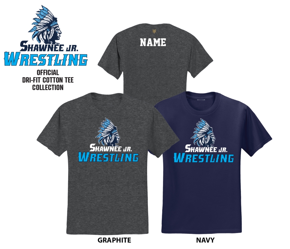 INTRODUCING THE SHAWNEE JR WRESTLING DRI-FIT COTTON TEE COLLECTION by PACER. Show support for your Favorite Wrestler & Team by wearing one or more of these Unisex 50/50 Cotton Tee's Adorned with the Renegade Mascot Logo on the Front Chest in a High Density Silicone Application.