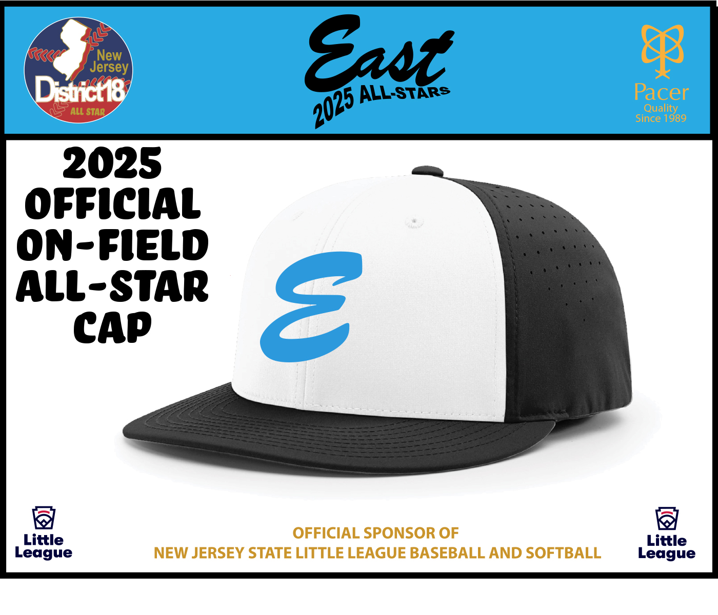 Introducing the 2025 OFFICIAL ON-FIELD TOMS RIVER EAST LITTLE LEAGUE ALL-STAR VAPOR SERIES REPLICA CAP made exclusively for the TRELL MEMBERSHIP by PACER. Now is the chance to order the same cap that the players & coaches will be wearing on the field. Show your support for your Favorite League, Town & Team by wearing one of these Authentic On-Field All-Star Replica Caps around town. This years Cap features the TRELL All Star ""E"" Logo embroidered on the front.