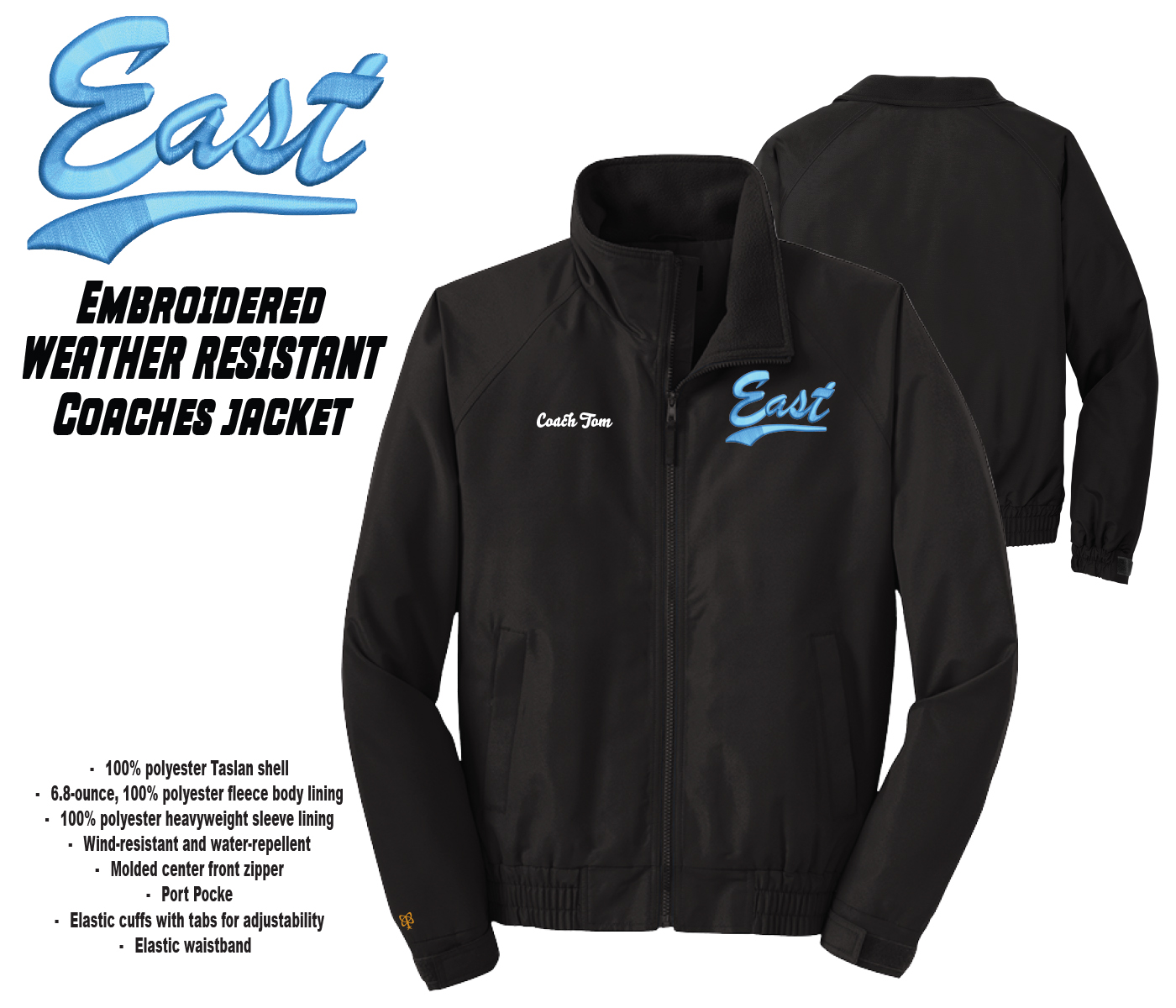 - Stylish Embroidery: This jacket features a sleek embroidered East design, representing Toms River East with pride.