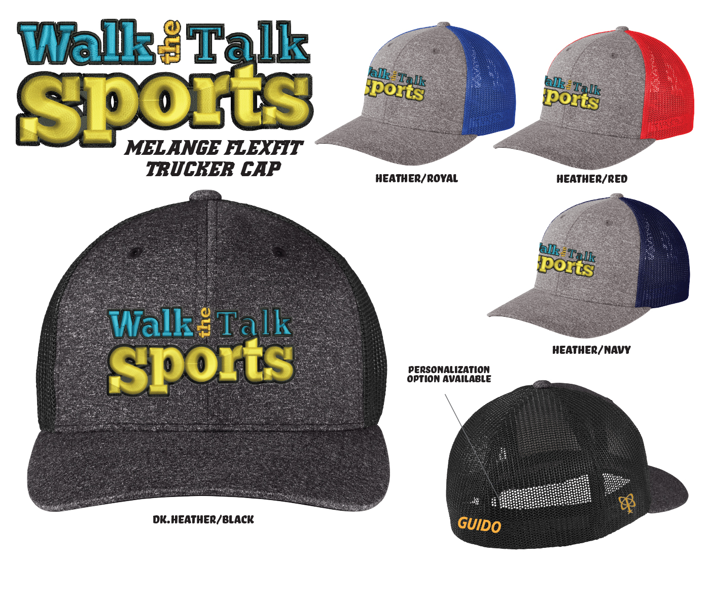 Introducing the Walk the Talk Sports Melange Flexfit Trucker Cap made exclusively for WTTS Fans by Pacer. Help support your favorite Talk Show by wearing one or more of these Melange Flexfit Trucker Mesh Back Baseball Caps around Town. Available exclusively @ WTTShop.com.